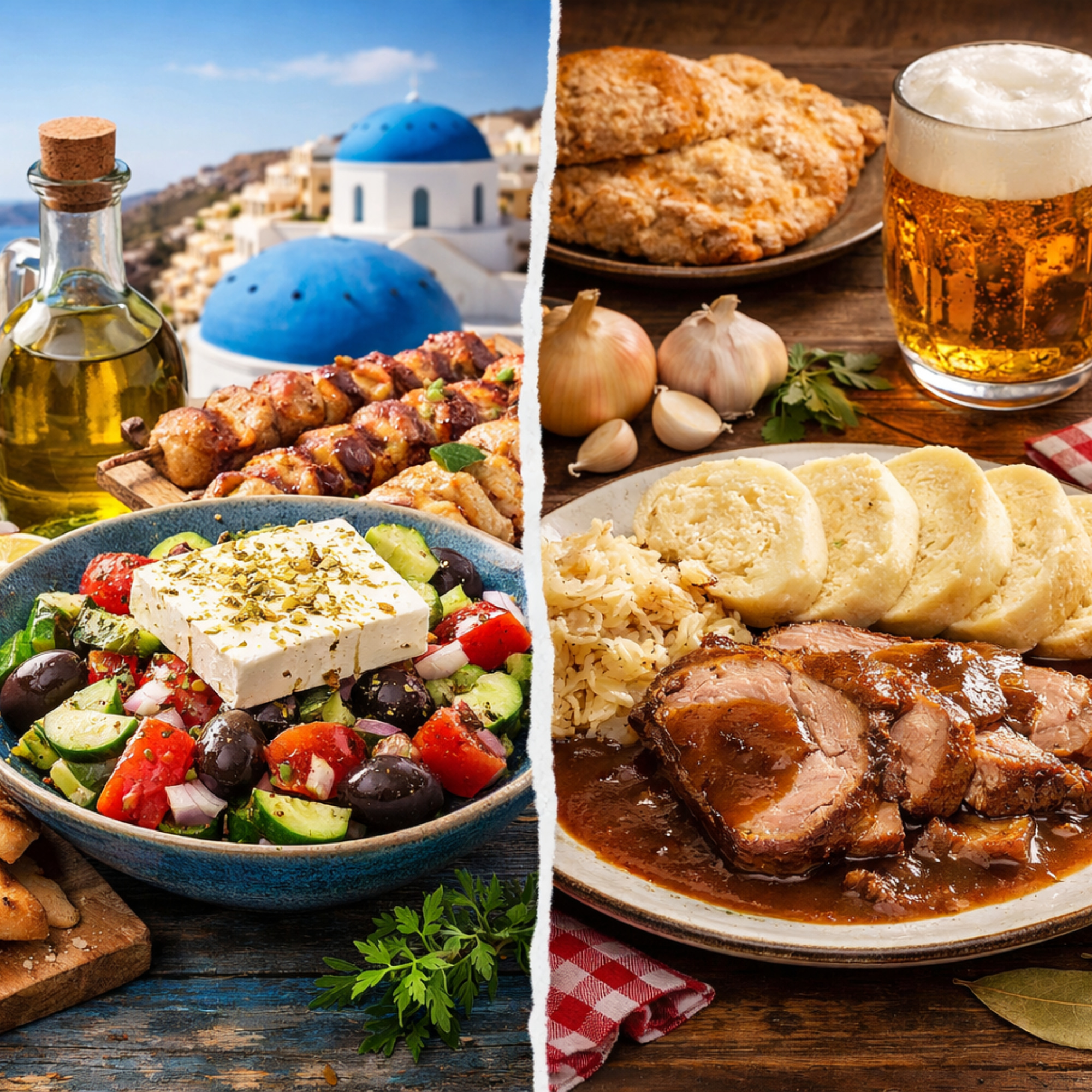 Řecká vs. česká kuchyně: hlavní rozdíly v chuti, surovinách a stylu stravování
