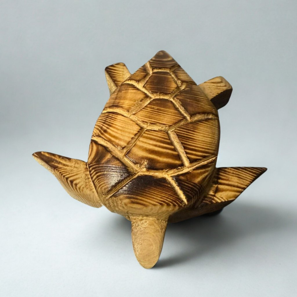 Každá želva je ručně vyrobená a originální, takže každý kus se může lehce lišit ve tvaru či kresbě dřeva. Fotografie slouží jako ukázka a každý výrobek má svůj jedinečný charakter.