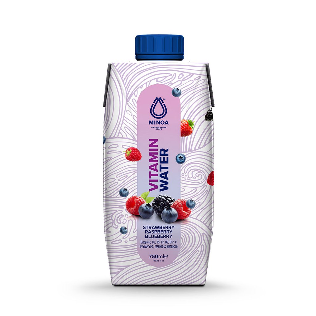 MINOA vitamínová voda je balena do papírového obalu z obnovitelných materiálů. Víčko je vyrobeno z rostlinných zdrojů, což přispívá k omezení použití plastů.
